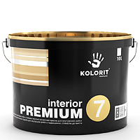 Interior Premium 7 - краска латексная для внутренних работ. Предназначена для первичной или ремонтной окраски минеральных (оштукатуренных бетонных, кирпичных, гипсокартонных и т.д.) поверхностей с высокой эксплуатационной нагрузкой. Обладает особой стойкостью к мытью, содержит противоплесневый компонент, гипоалергенная, возможна профессиональная тонировка. Расход: на впитывающие поверхности – 8-9 л/ккв м, на невпитывающие поверхности – 10-12 л/кв. м.
